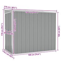 Șopron grădină/montaj perete gri 118x194x178 cm oțel zincat