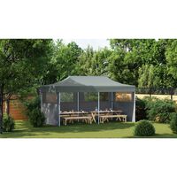 Marchiză hexagonală pliabilă, 6 pereți laterali, gri, 3,6x3,1 m