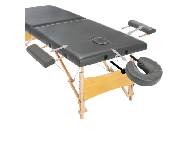 Masă de masaj cu 2 zone, cadru din lemn, antracit, 186 x 68 cm