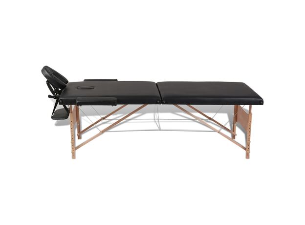 Masă de masaj pliabilă, 2 zone, negru, cadru din lemn