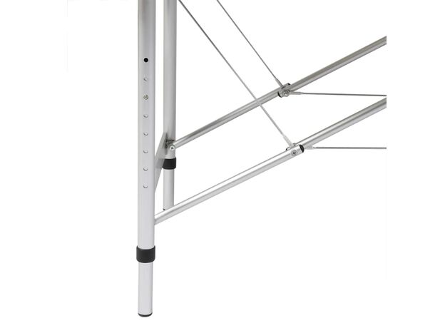 Masa este ușor de asamblat. Poate fi pliată sub forma unei valize. O geantă de transport este inclusă, pentru a facilita transportul și depozitarea.