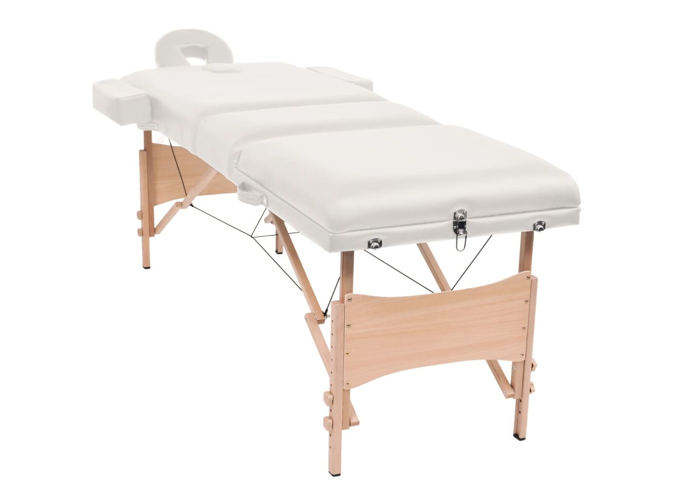 Masă de masaj pliabilă cu 3 zone, 10 cm grosime, alb