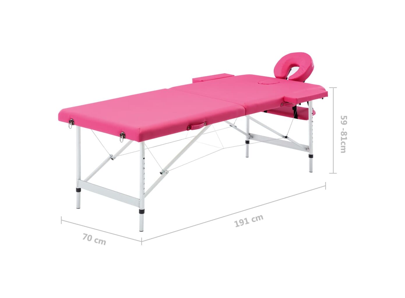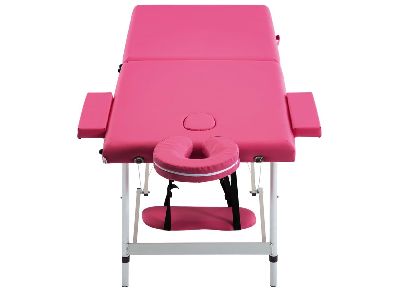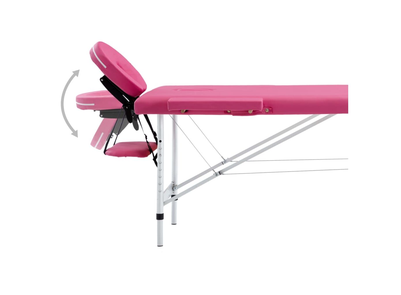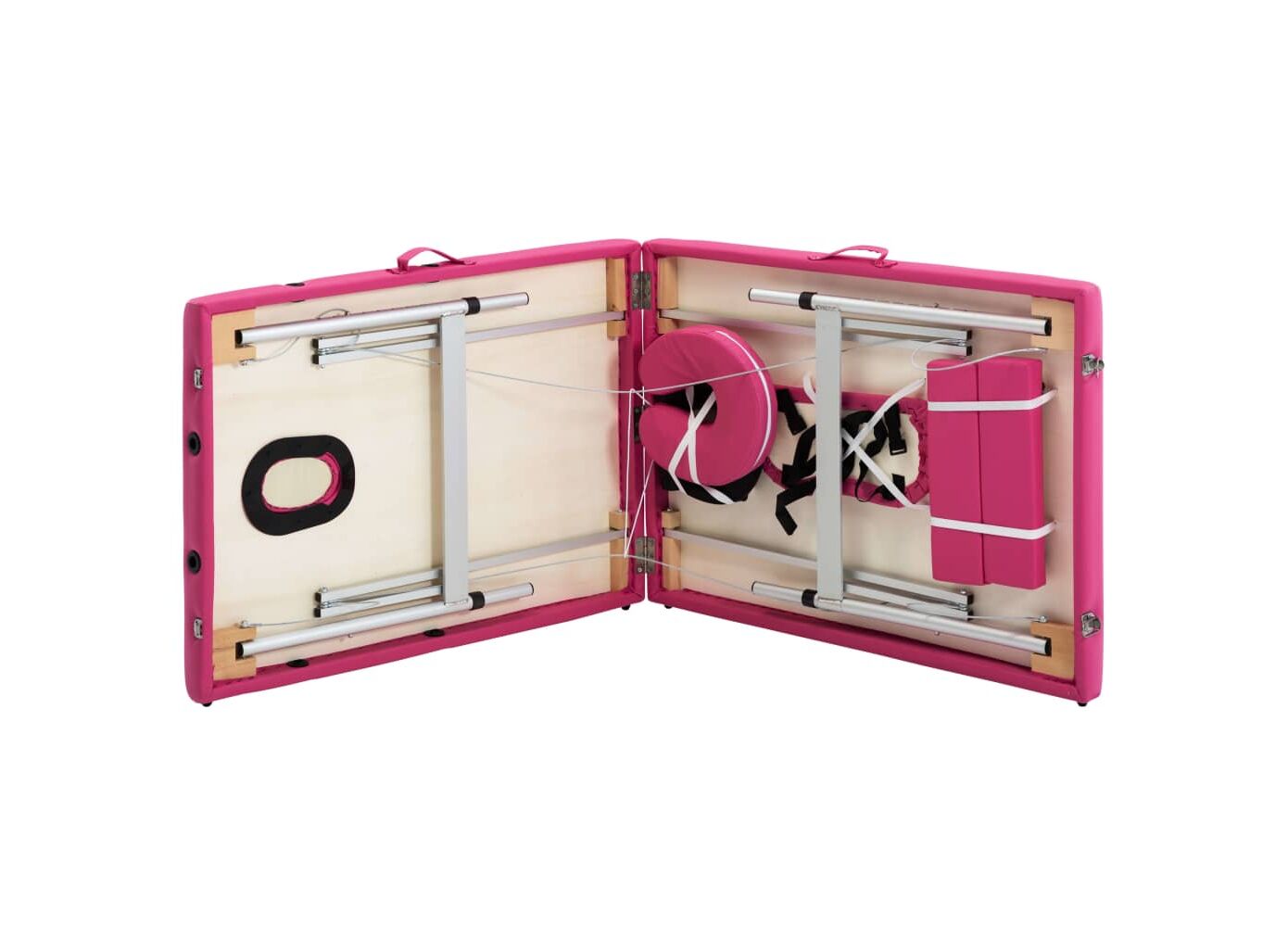 Masă de masaj pliabilă, 2 zone, roz, aluminiu