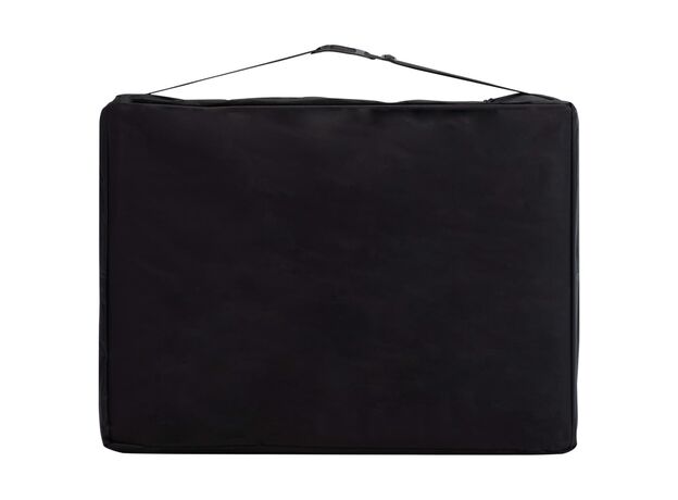 Perna acestei mese de terapie, căptușită cu spumă groasă, este foarte confortabilă și rezistentă la dezinfectant și ulei de masaj. Tetiera și suporturile pentru brațe sunt reglabile, împreună cu înălțimea mesei, care permite utilizatorului să se întindă confortabil, iar terapeutului să-și selecteze înălțimea de lucru dorită. Masa este portabilă, iar geanta de transport este inclusă pentru transport și depozitare ușoară.