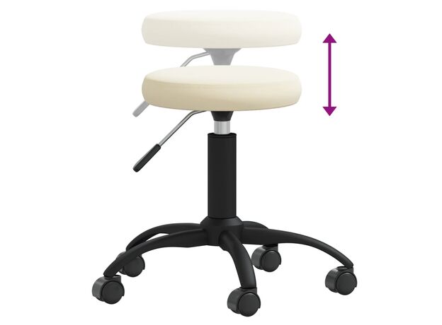 Taburetul pentru salonul de cosmetică este tapițat în catifea, ceea ce îl face durabil și moale la atingere. Cadrul din oțel vopsit electrostatic oferă robustețe și stabilitate ridicate. Datorită mecanismului de ridicare cu piston pe gaz, acest scaun de masaj poate fi reglat în înălțime după cum doriți dvs. Scaunul pivotant la 360 de grade vă dă posibilitatea de a schimba direcția cu ușurință.
