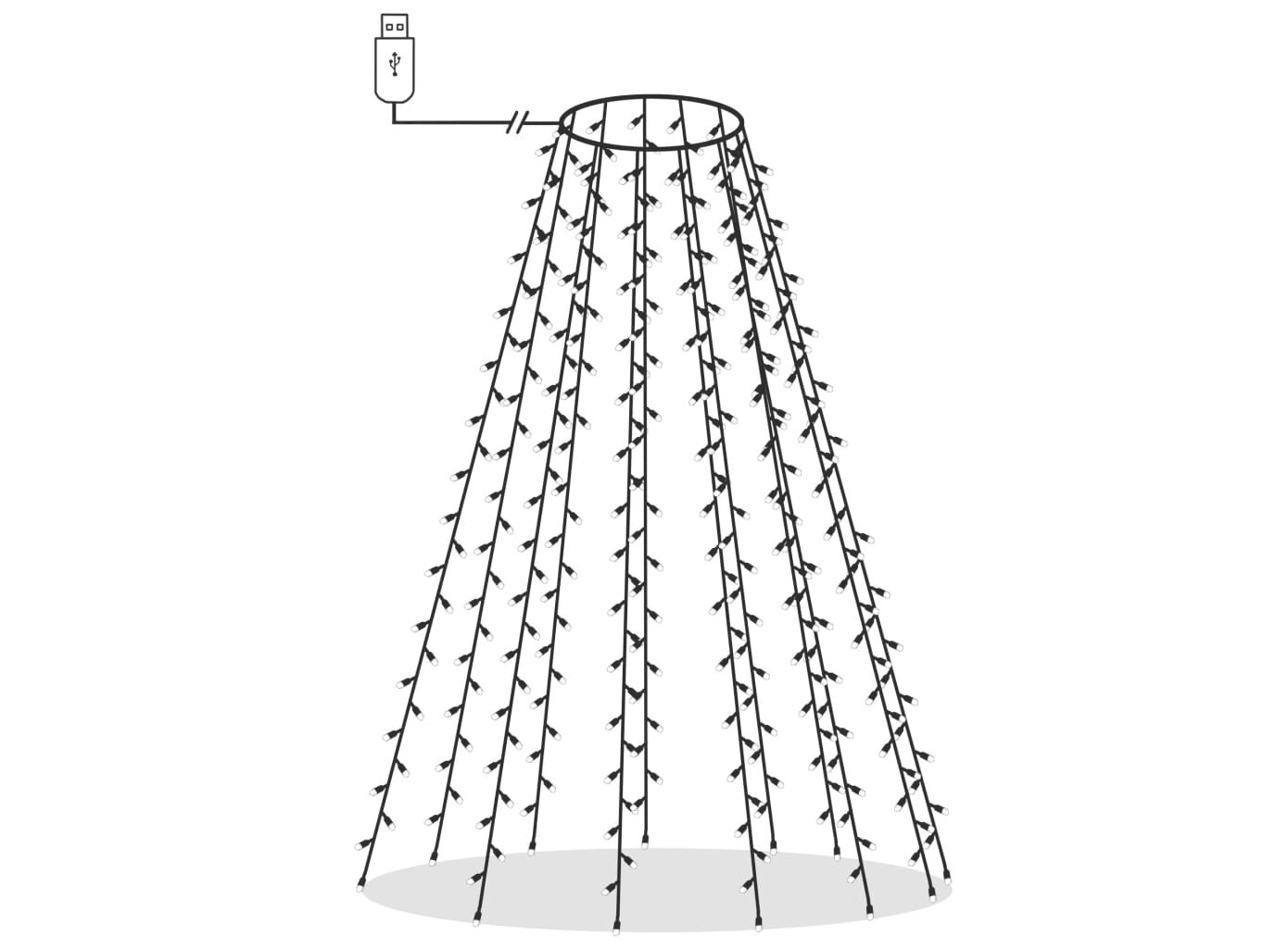 Instalația de lumini este alcătuită din 500 de LED-uri, foarte eficiente din punct de vedere energetic, cu o lumină albă caldă. Această decorațiune minunată de Crăciun este rezistentă la apă și, prin urmare, potrivită atât pentru interior, cât și pentru exterior. Puteți plasa cu ușurință acest decor în vârful bradului dvs. de Crăciun, iar firele sale luminoase se vor drapa în mod natural spre podea. Această instalație de lumini formează un adevărat punct de atracție, mai ales seara, și servește și ca sursă confortabilă de lumină ambientală. Când nu sunt folosite, aceste lumini LED pot fi depozitate cu ușurință pentru următoarele sărbători.