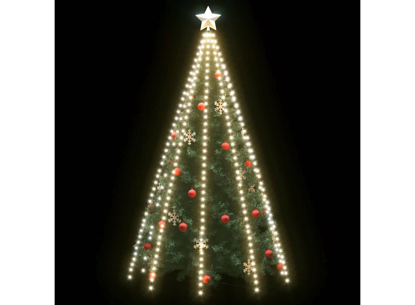 Instalația de lumini este alcătuită din 500 de LED-uri, foarte eficiente din punct de vedere energetic, cu o lumină albă caldă. Această decorațiune minunată de Crăciun este rezistentă la apă și, prin urmare, potrivită atât pentru interior, cât și pentru exterior. Puteți plasa cu ușurință acest decor în vârful bradului dvs. de Crăciun, iar firele sale luminoase se vor drapa în mod natural spre podea. Această instalație de lumini formează un adevărat punct de atracție, mai ales seara, și servește și ca sursă confortabilă de lumină ambientală. Când nu sunt folosite, aceste lumini LED pot fi depozitate cu ușurință pentru următoarele sărbători.