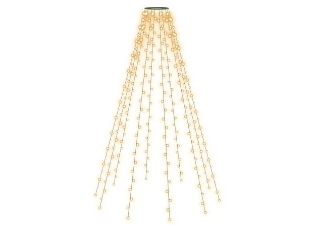 Instalația de lumini este alcătuită din 500 de LED-uri, foarte eficiente din punct de vedere energetic, cu o lumină albă caldă. Această decorațiune minunată de Crăciun este rezistentă la apă și, prin urmare, potrivită atât pentru interior, cât și pentru exterior. Puteți plasa cu ușurință acest decor în vârful bradului dvs. de Crăciun, iar firele sale luminoase se vor drapa în mod natural spre podea. Această instalație de lumini formează un adevărat punct de atracție, mai ales seara, și servește și ca sursă confortabilă de lumină ambientală. Când nu sunt folosite, aceste lumini LED pot fi depozitate cu ușurință pentru următoarele sărbători.