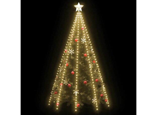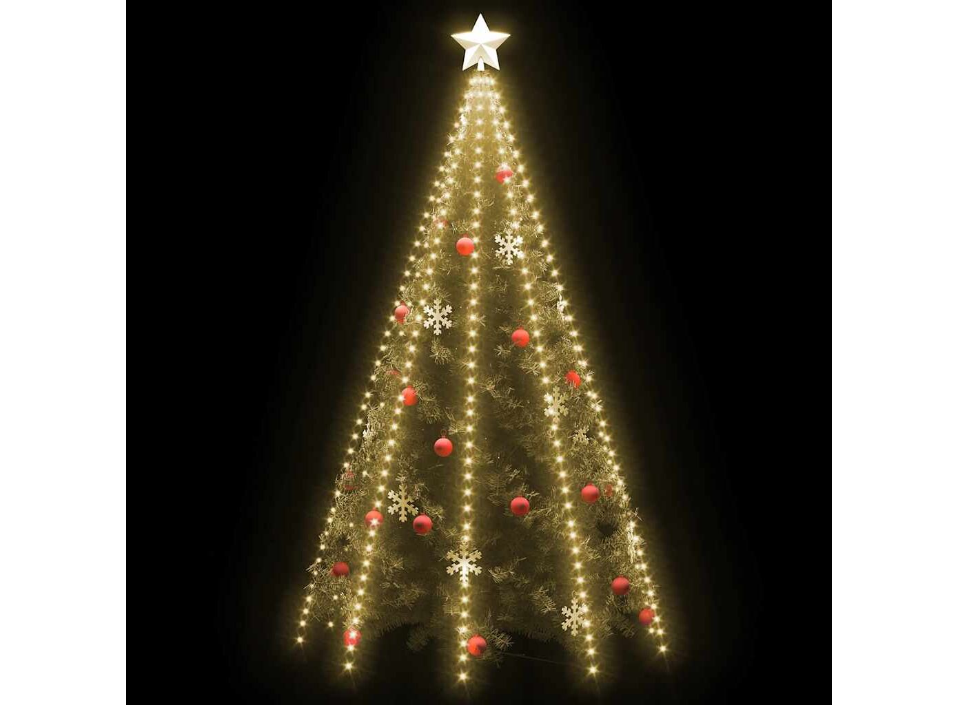 Instalația de lumini este alcătuită din 500 de LED-uri, foarte eficiente din punct de vedere energetic, cu o lumină albă caldă. Această decorațiune minunată de Crăciun este rezistentă la apă și, prin urmare, potrivită atât pentru interior, cât și pentru exterior. Puteți plasa cu ușurință acest decor în vârful bradului dvs. de Crăciun, iar firele sale luminoase se vor drapa în mod natural spre podea. Această instalație de lumini formează un adevărat punct de atracție, mai ales seara, și servește și ca sursă confortabilă de lumină ambientală. Când nu sunt folosite, aceste lumini LED pot fi depozitate cu ușurință pentru următoarele sărbători.