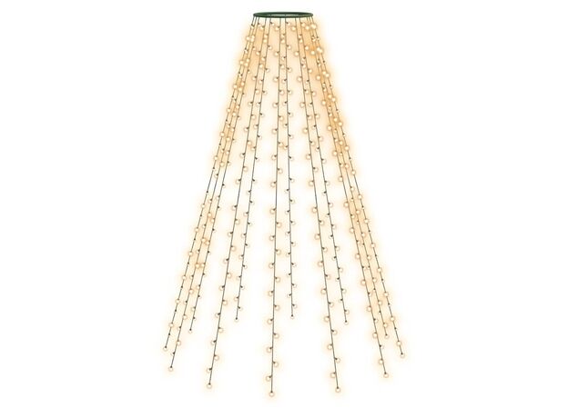Instalația de lumini este alcătuită din 500 de LED-uri, foarte eficiente din punct de vedere energetic, cu o lumină albă caldă. Această decorațiune minunată de Crăciun este rezistentă la apă și, prin urmare, potrivită atât pentru interior, cât și pentru exterior. Puteți plasa cu ușurință acest decor în vârful bradului dvs. de Crăciun, iar firele sale luminoase se vor drapa în mod natural spre podea. Această instalație de lumini formează un adevărat punct de atracție, mai ales seara, și servește și ca sursă confortabilă de lumină ambientală. Când nu sunt folosite, aceste lumini LED pot fi depozitate cu ușurință pentru următoarele sărbători.