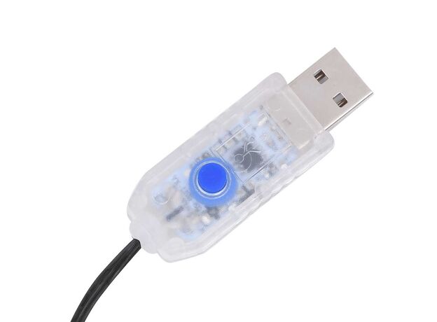 Notă: USB-ul inclus nu este impermeabil, astfel încât această piesă trebuie să fie ferită de apă, dar datorită extensiei de cablu de 5 m instalația de lumini poate fi utilizată în exterior, deoarece cablul și produsul sunt impermeabile. Acest produs are un conector USB, dar sursa de alimentare certificată de 5 V nu este inclusă.