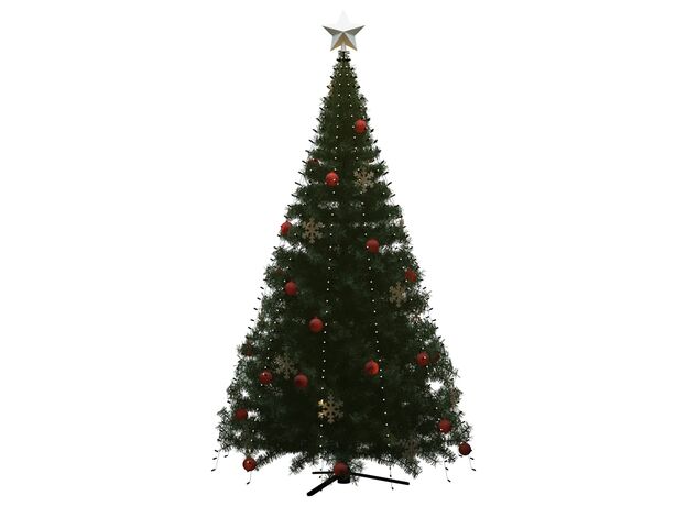 Instalația de lumini este alcătuită din 500 de LED-uri, foarte eficiente din punct de vedere energetic, cu o lumină albă caldă. Această decorațiune minunată de Crăciun este rezistentă la apă și, prin urmare, potrivită atât pentru interior, cât și pentru exterior. Puteți plasa cu ușurință acest decor în vârful bradului dvs. de Crăciun, iar firele sale luminoase se vor drapa în mod natural spre podea. Această instalație de lumini formează un adevărat punct de atracție, mai ales seara, și servește și ca sursă confortabilă de lumină ambientală. Când nu sunt folosite, aceste lumini LED pot fi depozitate cu ușurință pentru următoarele sărbători.