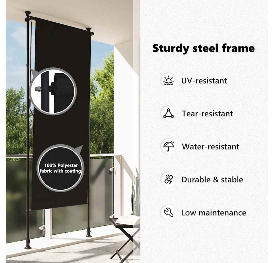 - Material durabil: Cadrul paravanului de confidențialitate este fabricat din oțel, care este robust și durabil. Țesătura cu tratament de suprafață din PU este rezistentă la razele UV. Vă va proteja familia sau oaspeții de razele UV și de lumina orbitoare a soarelui.