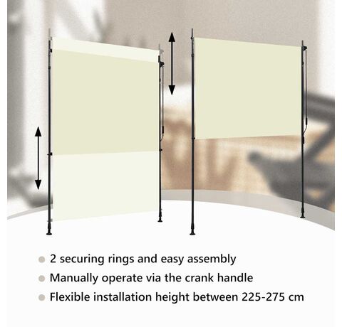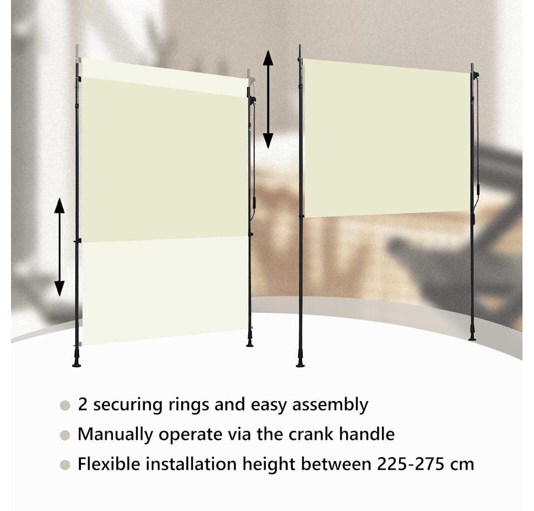 • Funcție retractabilă: Datorită manivelei cu mâner, paravanul rulant este retractabil, pentru a satisface diferitele cerințe. Oferă umbră răcoritoare atunci când se întinde și nu blochează vederea când este strânsă.