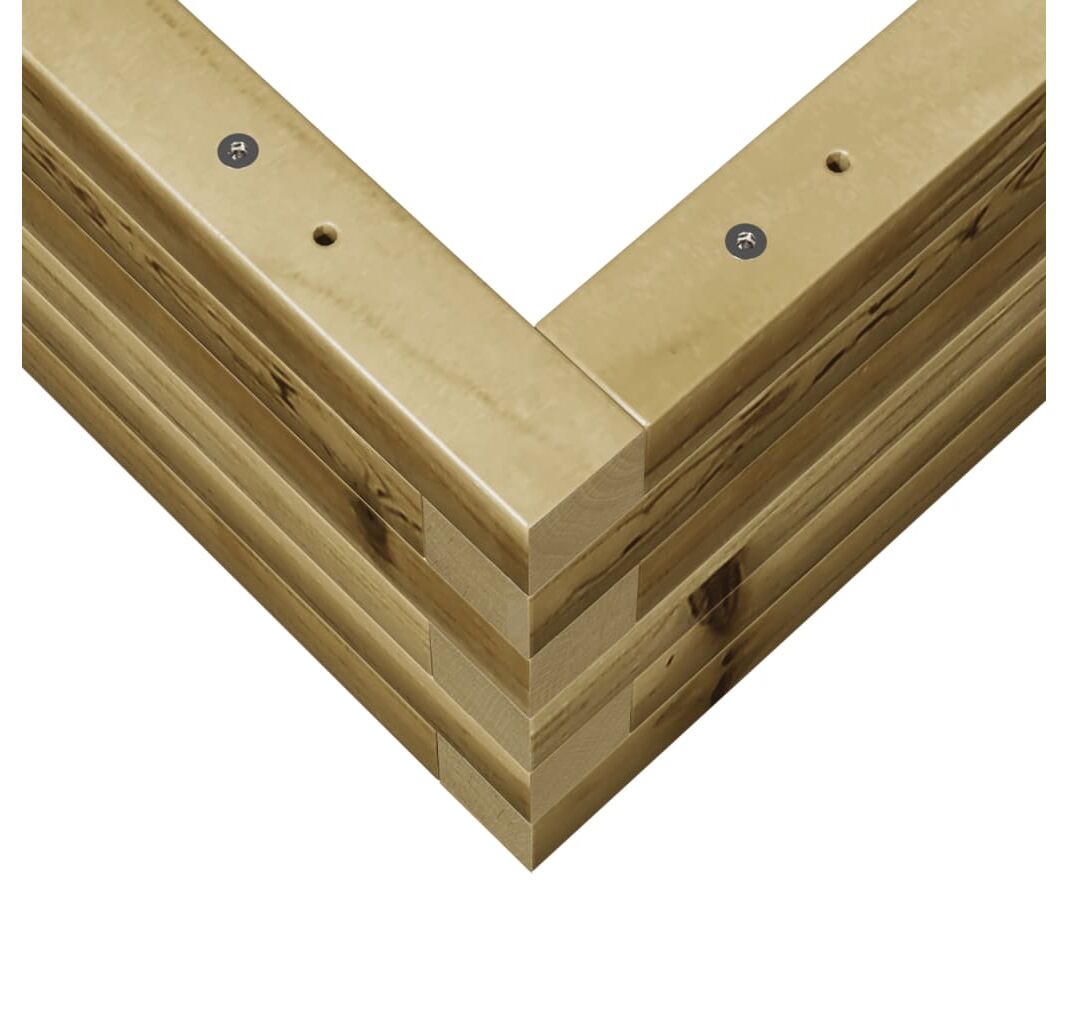 - Cadru robust și stabil: Lemnul masiv de pin este cunoscut pentru rezistența și durabilitatea sa. Fibrele sale drepte și nodurile distinctive contribuie la farmecul său rustic. Impregnarea este un proces de conservare care se realizează prin utilizarea autoclavelor. Tratamentul sub presiune crește rezistența la descompunere și la intemperii.