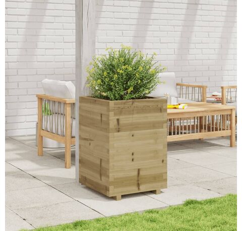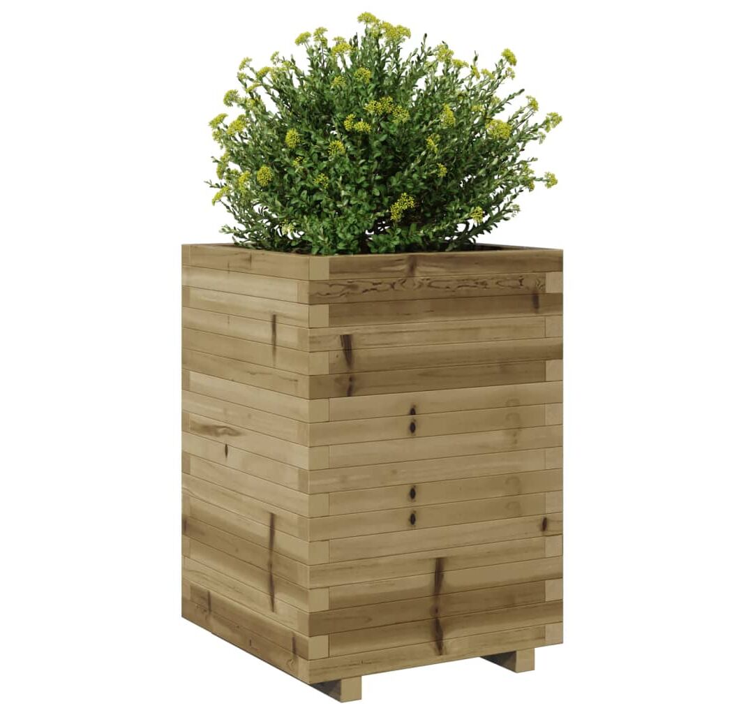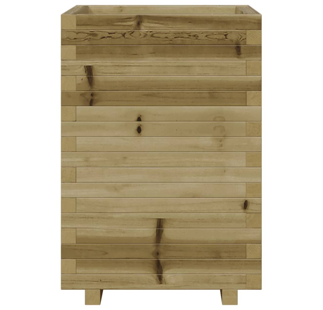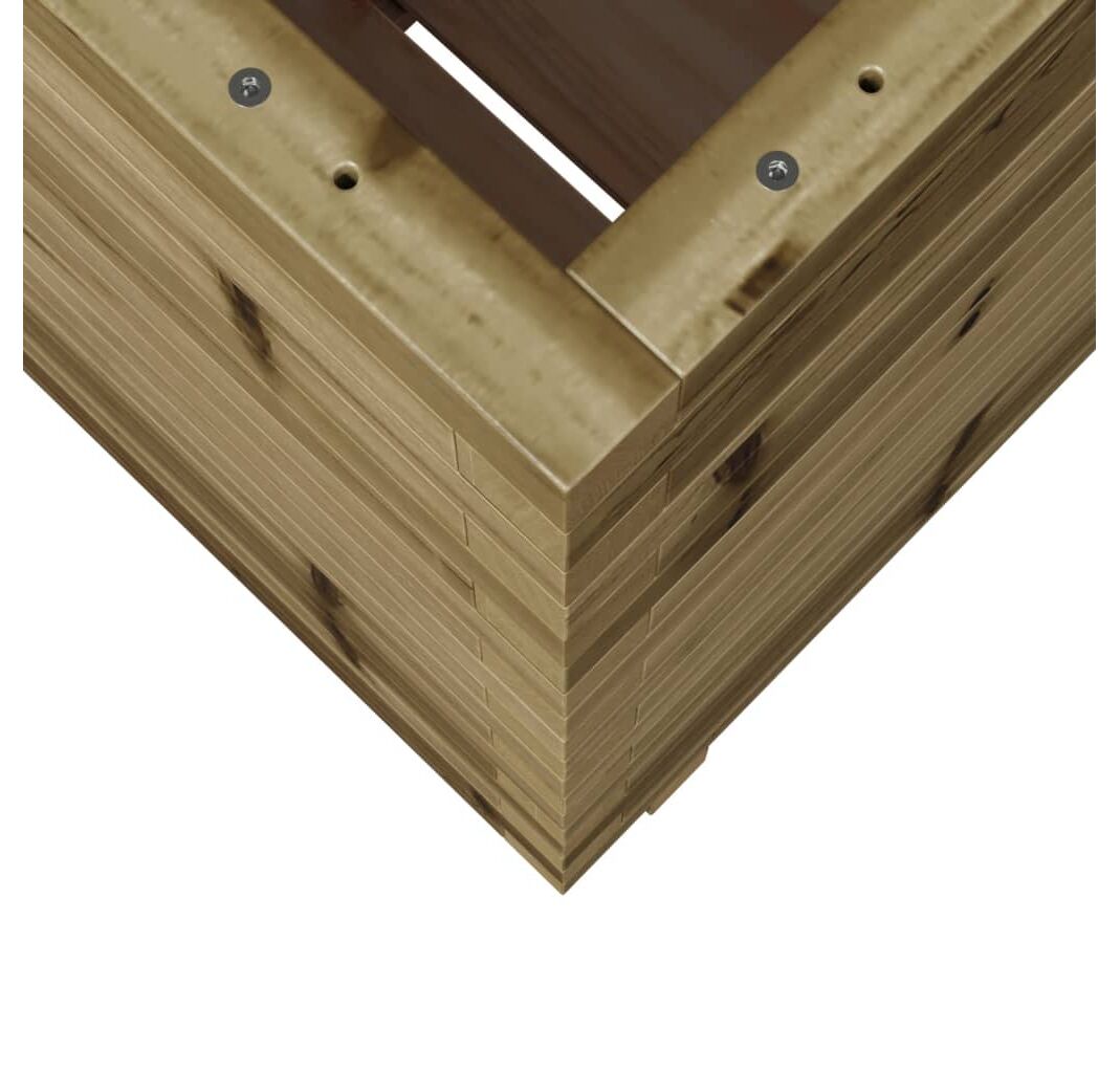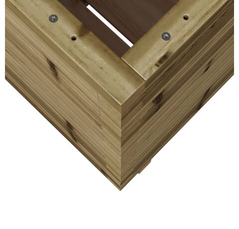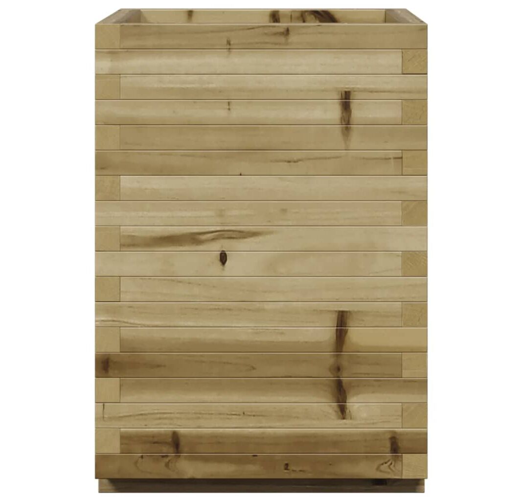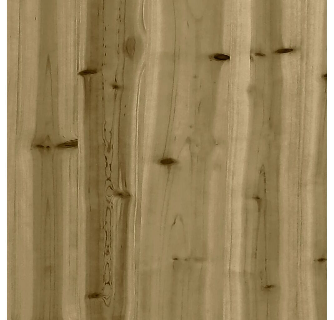 - Lemn de pin tratat: Lemnul masiv de pin este un material natural frumos. Lemnul de pin are fibre drepte, iar nodurile dau materialului originalitate și un aspect rustic. Impregnarea este un proces de conservare care se realizează prin utilizarea autoclavelor. Tratamentul sub presiune crește rezistența la descompunere și la intemperii.