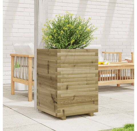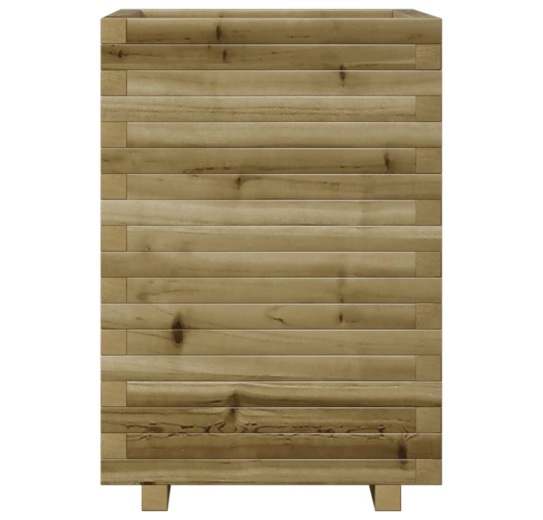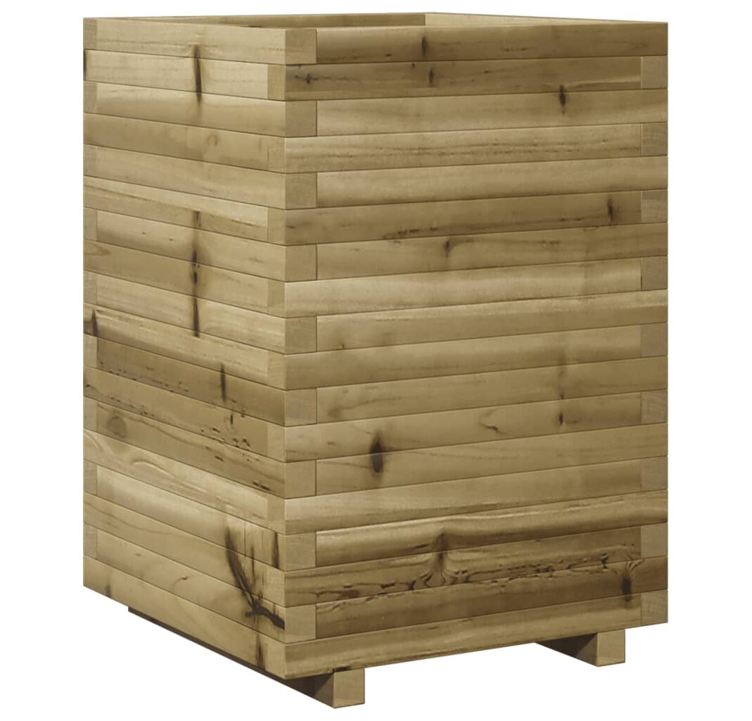 - Lemn de pin tratat: Lemnul masiv de pin este un material natural frumos. Lemnul de pin are fibre drepte, iar nodurile dau materialului originalitate și un aspect rustic. Impregnarea este un proces de conservare care se realizează prin utilizarea autoclavelor. Tratamentul sub presiune crește rezistența la descompunere și la intemperii.