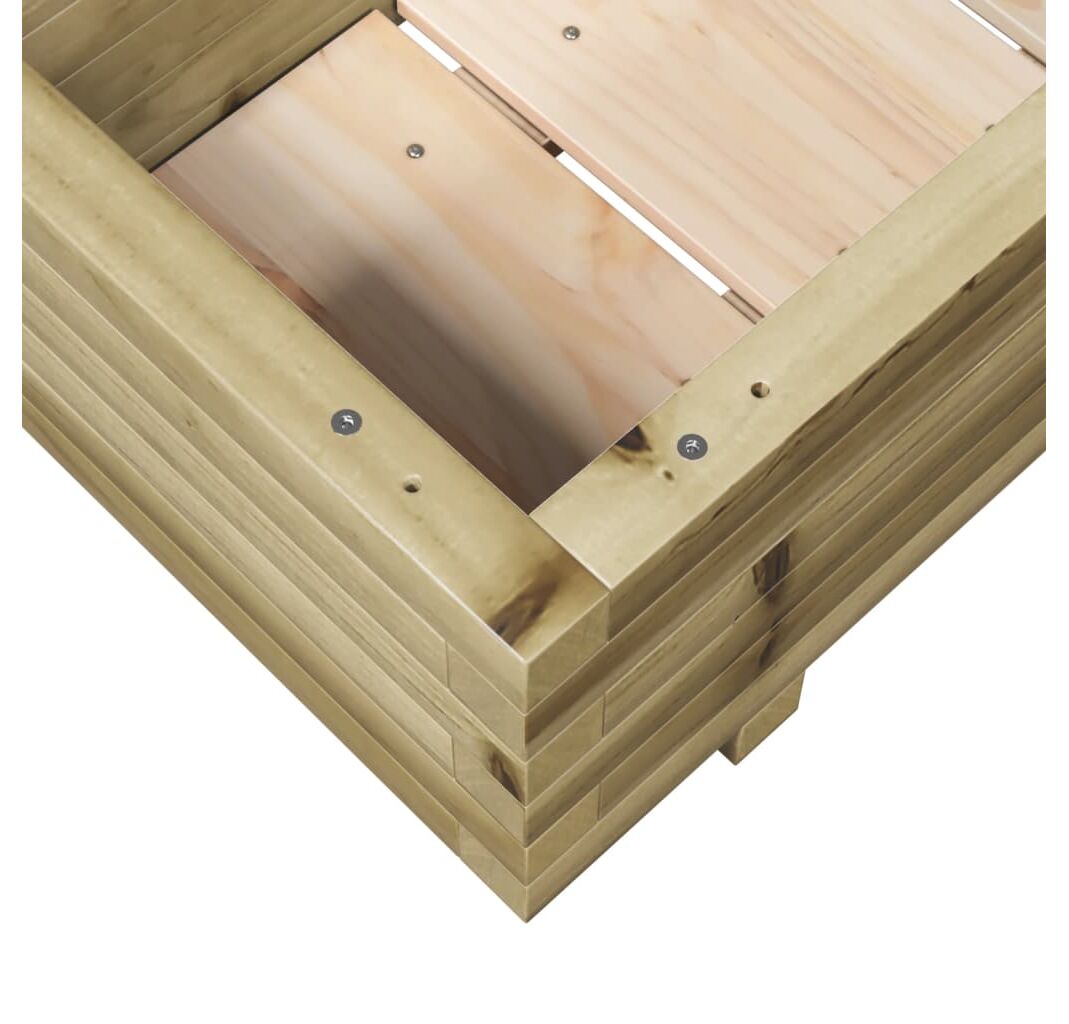 - Cadru robust și stabil: Lemnul masiv de pin este cunoscut pentru rezistența și durabilitatea sa. Fibrele sale drepte și nodurile distinctive contribuie la farmecul său rustic. Impregnarea este un proces de conservare care se realizează prin utilizarea autoclavelor. Tratamentul sub presiune crește rezistența la descompunere și la intemperii.