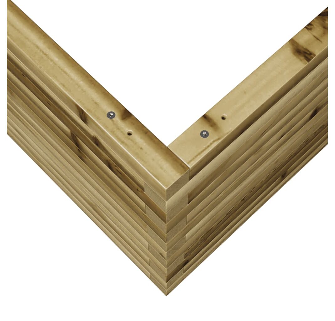 - Cadru robust și stabil: Lemnul masiv de pin este cunoscut pentru rezistența și durabilitatea sa. Fibrele sale drepte și nodurile distinctive contribuie la farmecul său rustic. Impregnarea este un proces de conservare care se realizează prin utilizarea autoclavelor. Tratamentul sub presiune crește rezistența la descompunere și la intemperii.