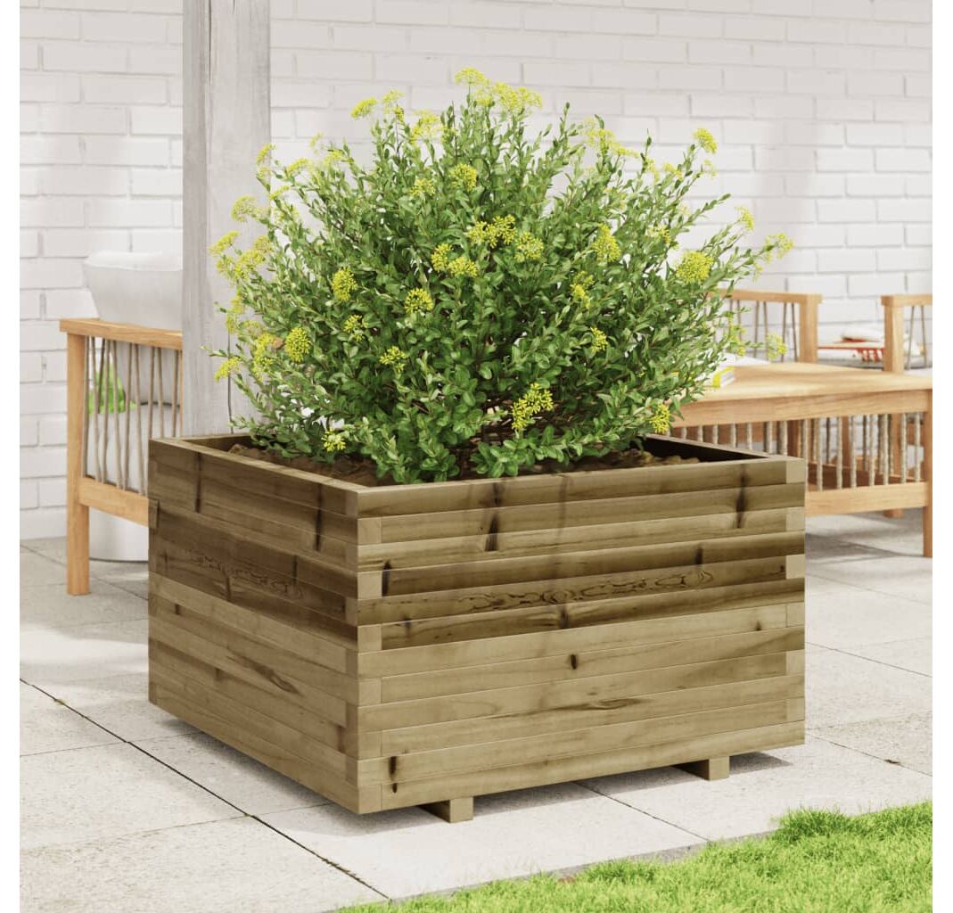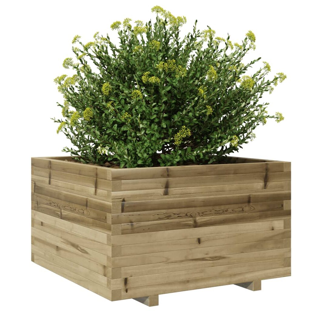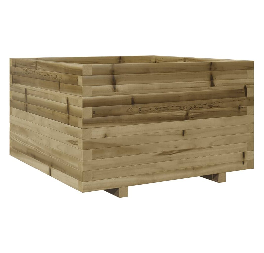 - Lemn de pin tratat: Lemnul masiv de pin este un material natural frumos. Lemnul de pin are fibre drepte, iar nodurile dau materialului originalitate și un aspect rustic. Impregnarea este un proces de conservare care se realizează prin utilizarea autoclavelor. Tratamentul sub presiune crește rezistența la descompunere și la intemperii.