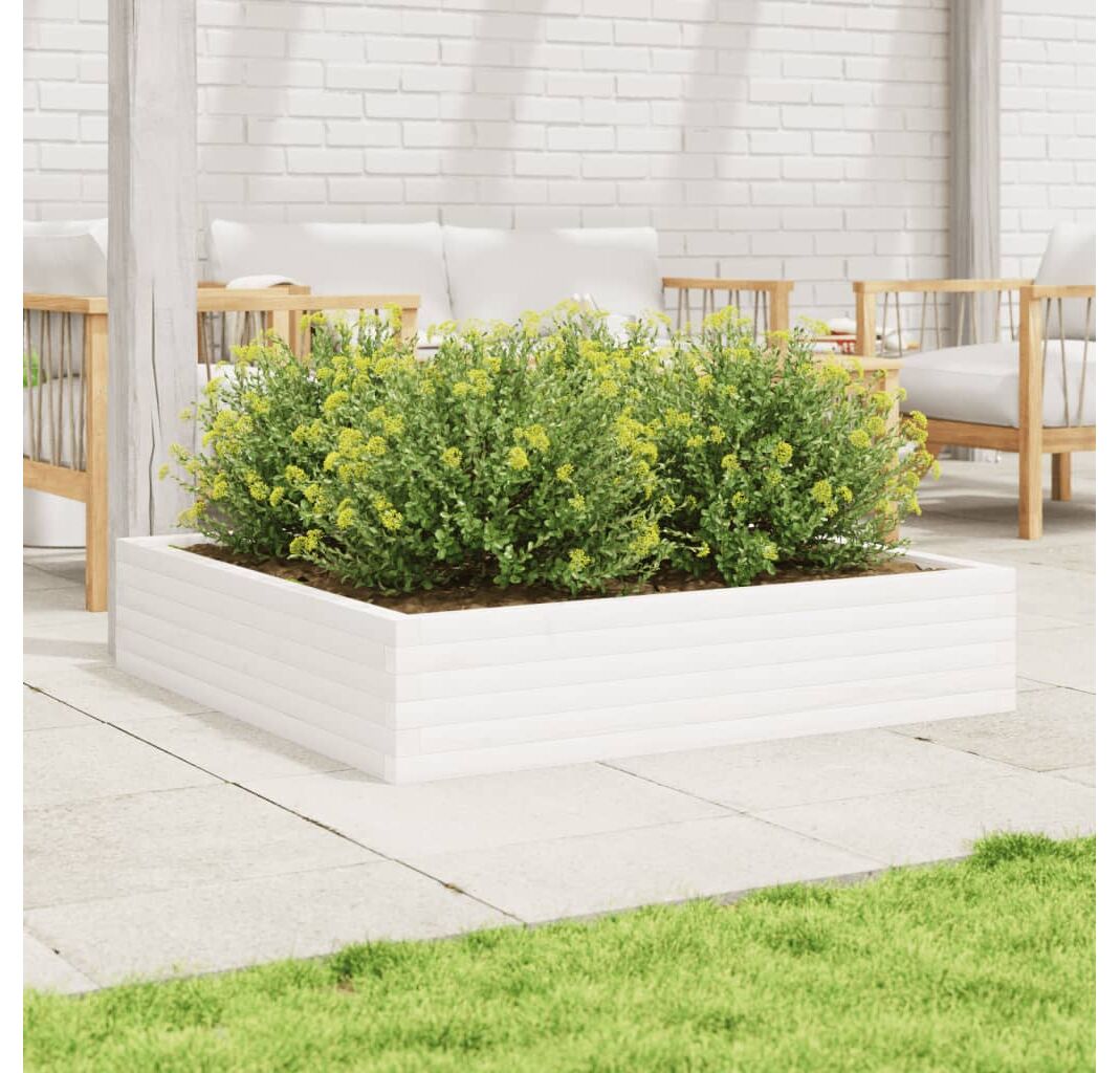 Această jardinieră de grădină din lemn este o alegere ideală pentru cultivarea unei varietăți de flori sau plante.