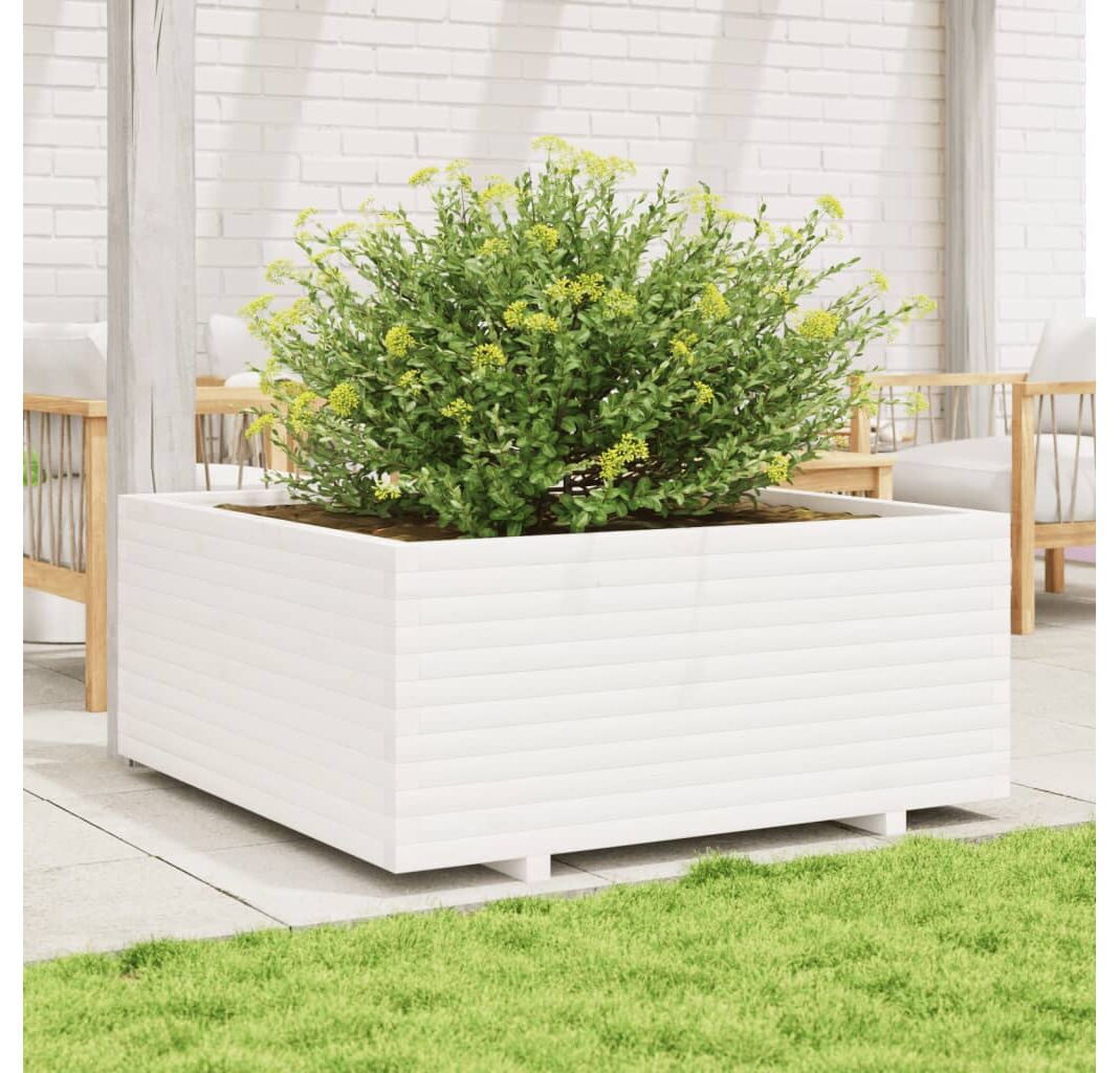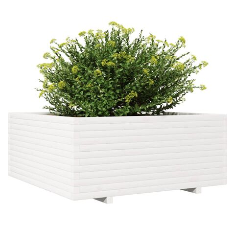 Jardinieră de grădină, alb, 110x110x49,5 cm, lemn masiv de pin