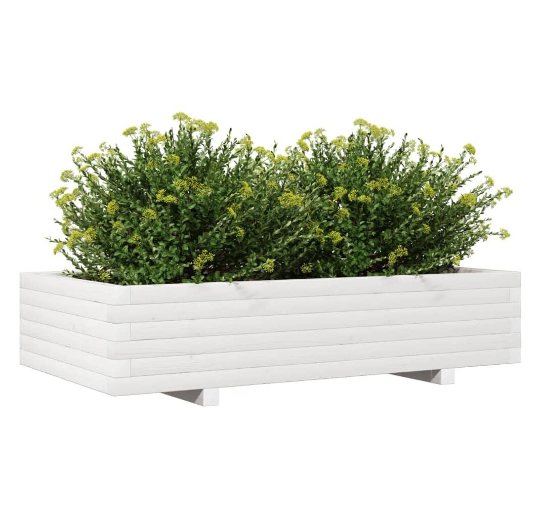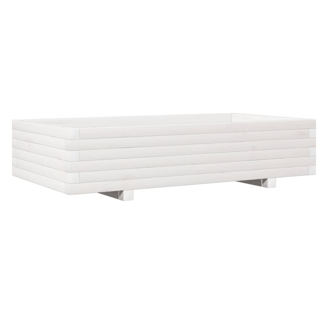 Jardinieră de grădină, alb, 110x60x26,5 cm, lemn masiv de pin