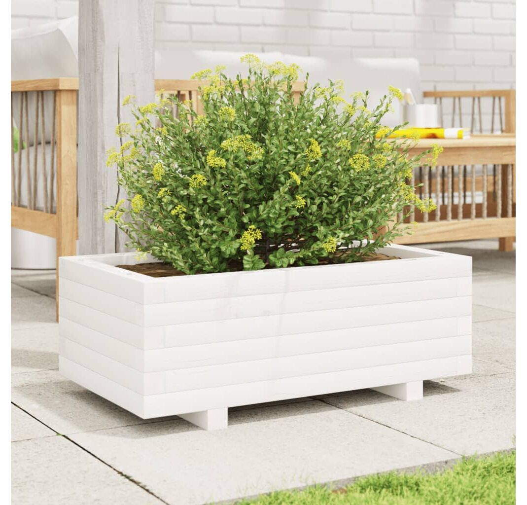 Această jardinieră de grădină din lemn este o alegere ideală pentru cultivarea unei varietăți de flori sau plante.