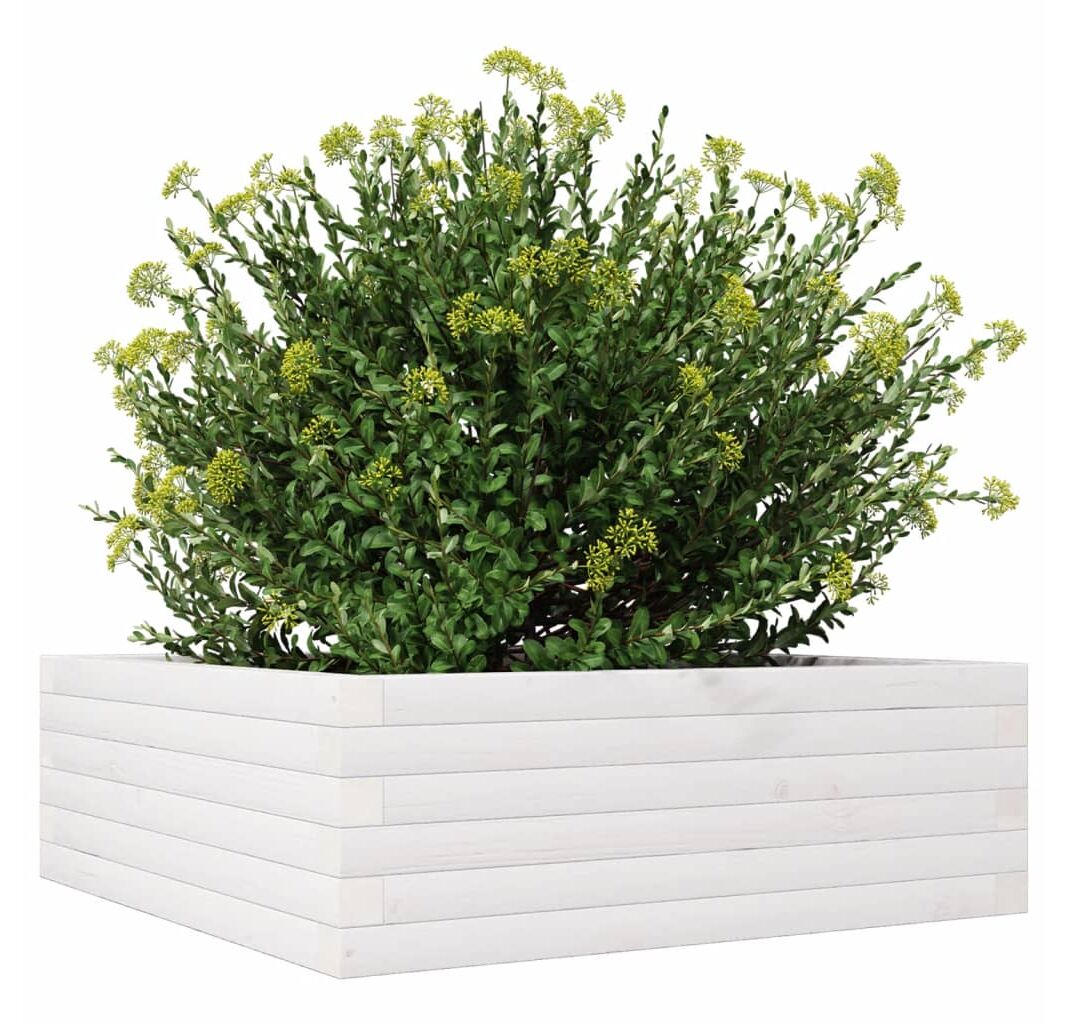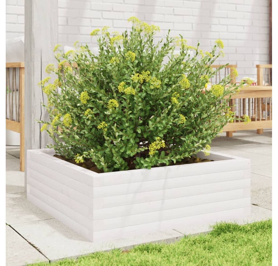 Jardinieră de grădină, alb, 70x70x23 cm, lemn masiv de pin