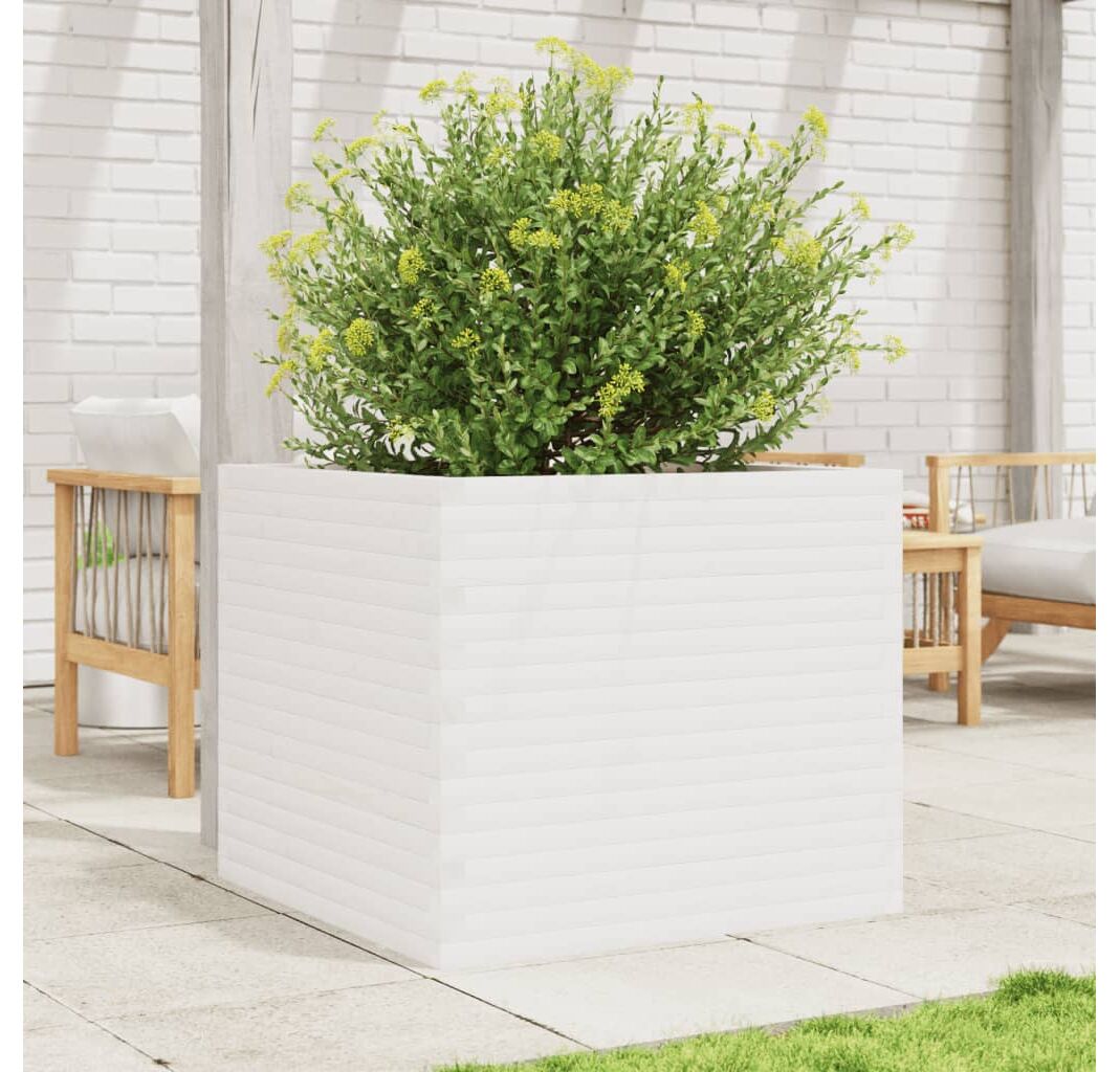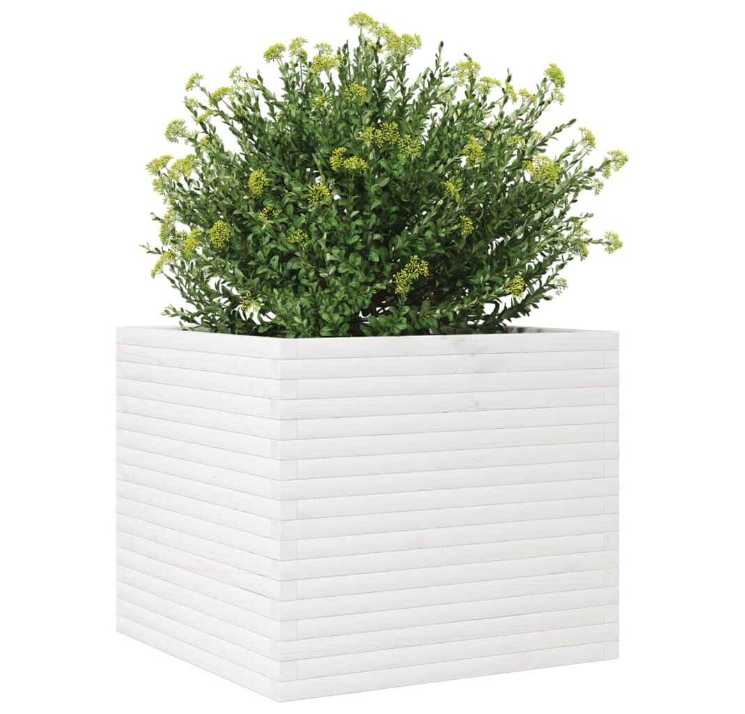 Jardinieră de grădină, alb, 80x80x68,5 cm, lemn masiv de pin