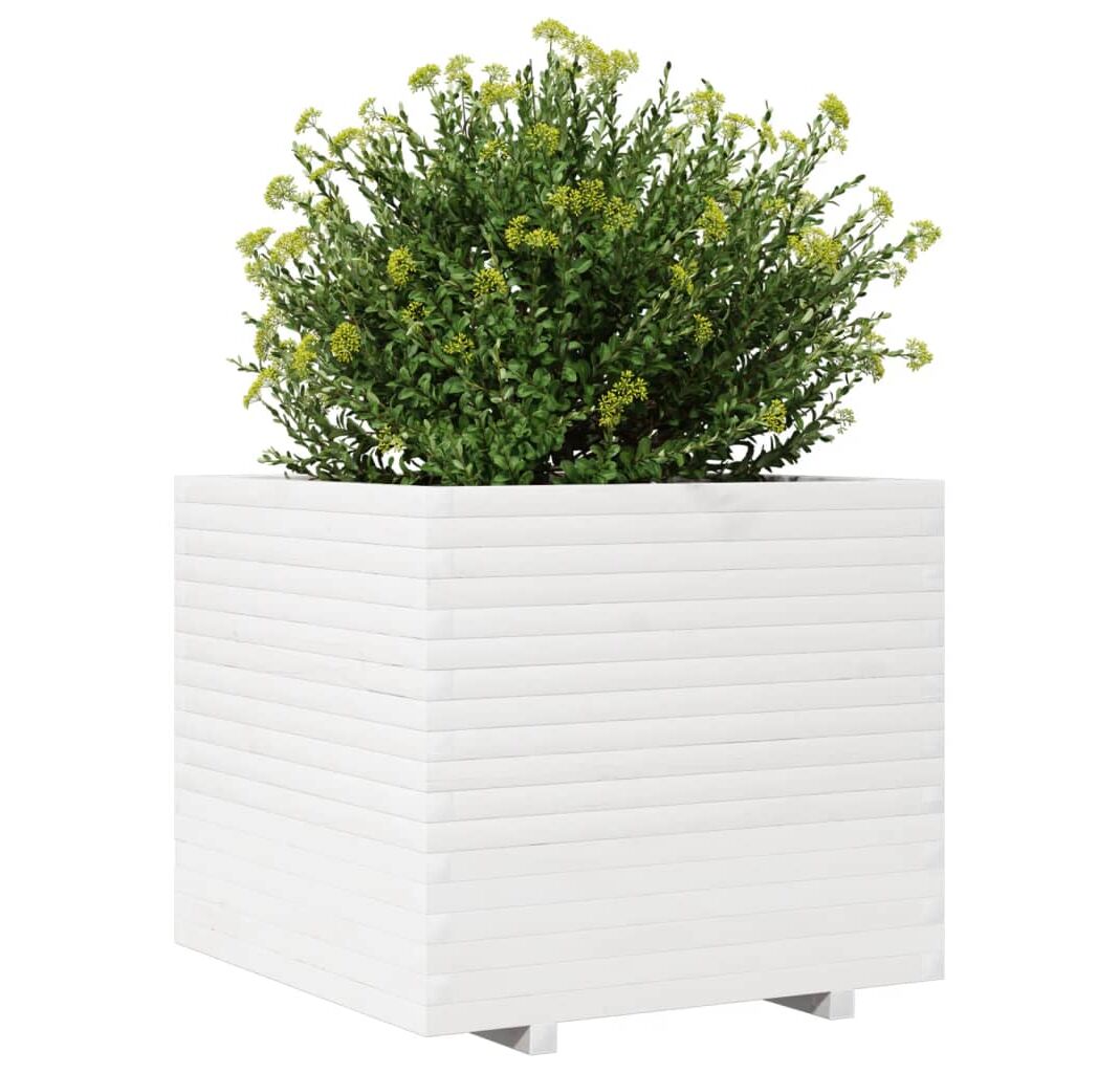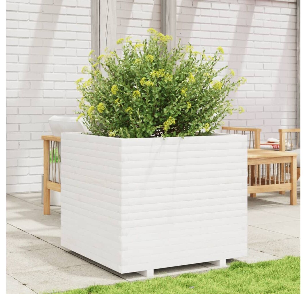 Jardinieră de grădină, alb, 80x80x72 cm, lemn masiv de pin