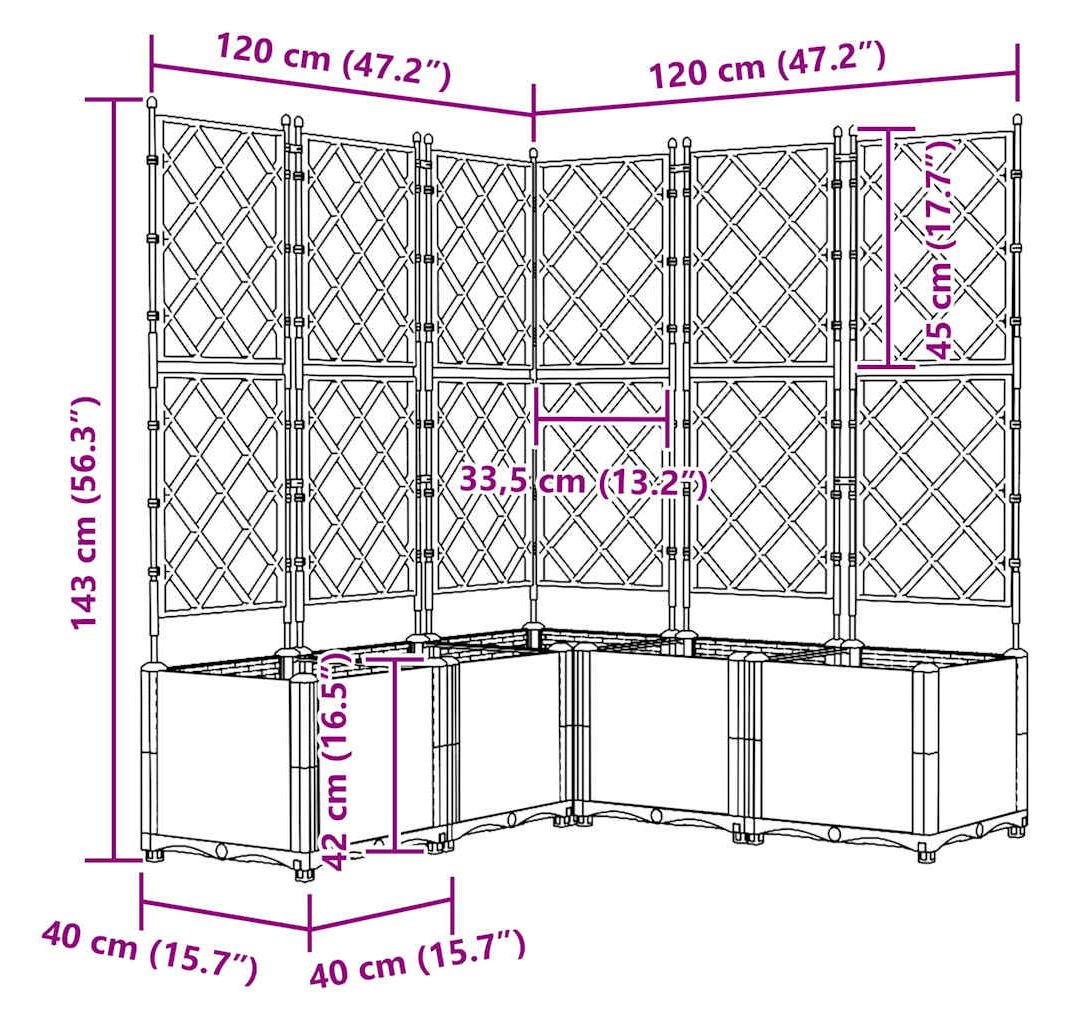 Ghiveciul de grădină vidaXL cu tutore este o alegere super pentru grădinarii care activează atât în interior, cât și în exterior. Făcut din materiale rezistente, combină stilul modern cu un design texturat, perfect pentru balcon, grădină sau terasă. Cu dimensiuni generoase de 120 x 120 x 143 cm, oferă loc suficient pentru a evidenția plante și flori, fie că ești începător sau ai mai multă experiență în grădinărit.