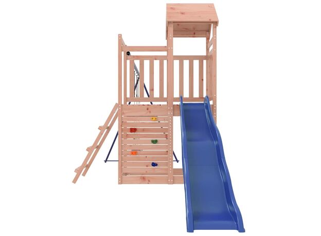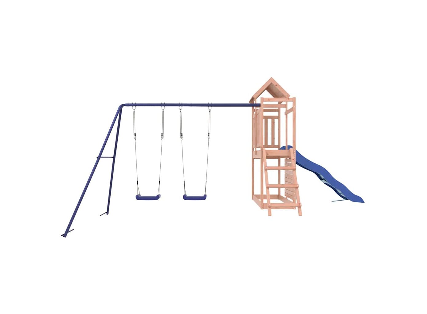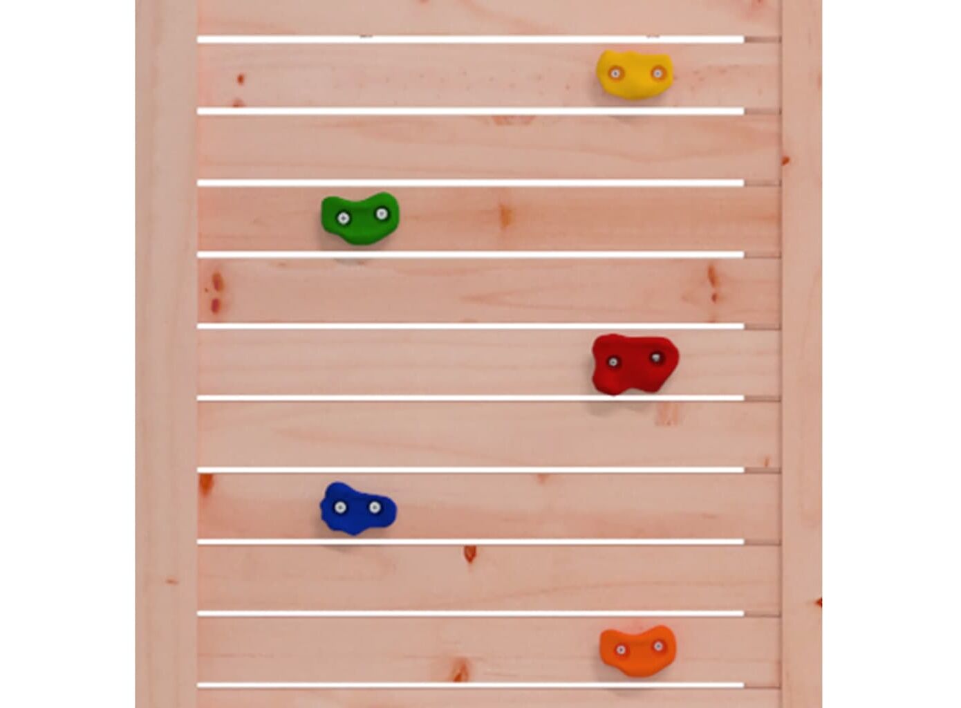 • Material rezistent: Acest cadru de cățărare cu tobogan este realizat din lemn masiv de douglas. Lemnul masiv de douglas este un lemn foarte durabil, care funcționează bine pentru exterior. Lemnul douglas este, de asemenea, suficient de rezistent pentru a avea nevoie de îngrijire minimă, chiar și sub influența intemperiilor.