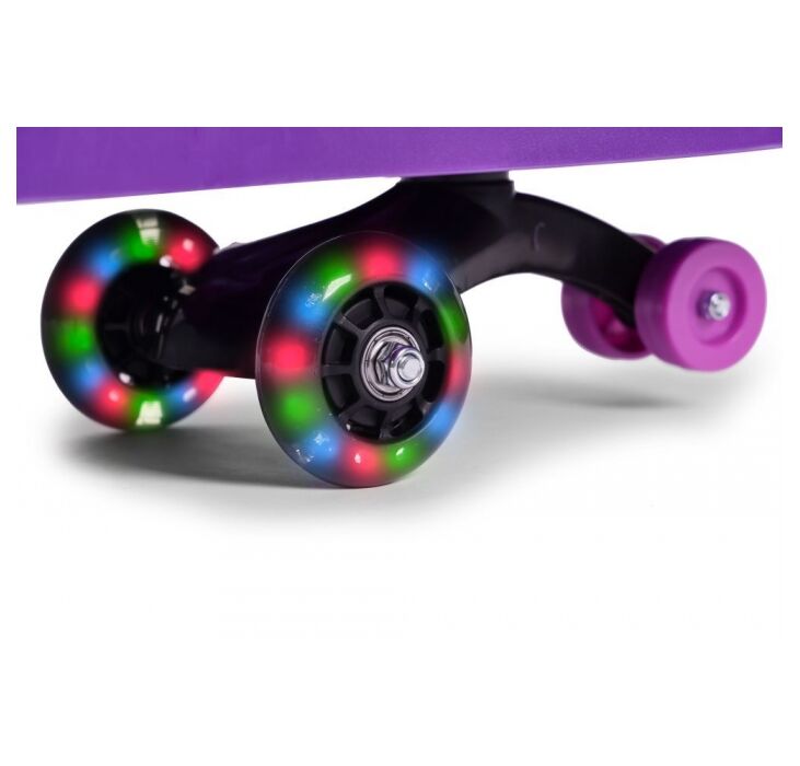 Rotile sunt realizate din cauciuc moale (poliuretan), astfel incat nu deterioreaza podeaua si garanteaza o calatorie placuta pe suprafetele mai putin plane. In timpul mersului, rotile stralucesc in culori diferite, oferind si mai multa distractie. Trotineta are un scaun ergonomic, suporturi antiderapante pentru picioare si un volan rotativ la 360°.