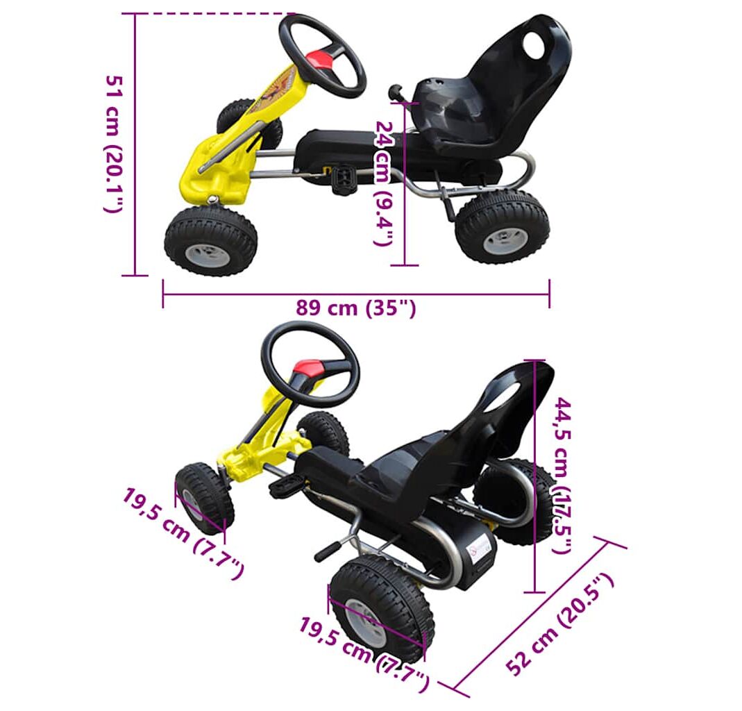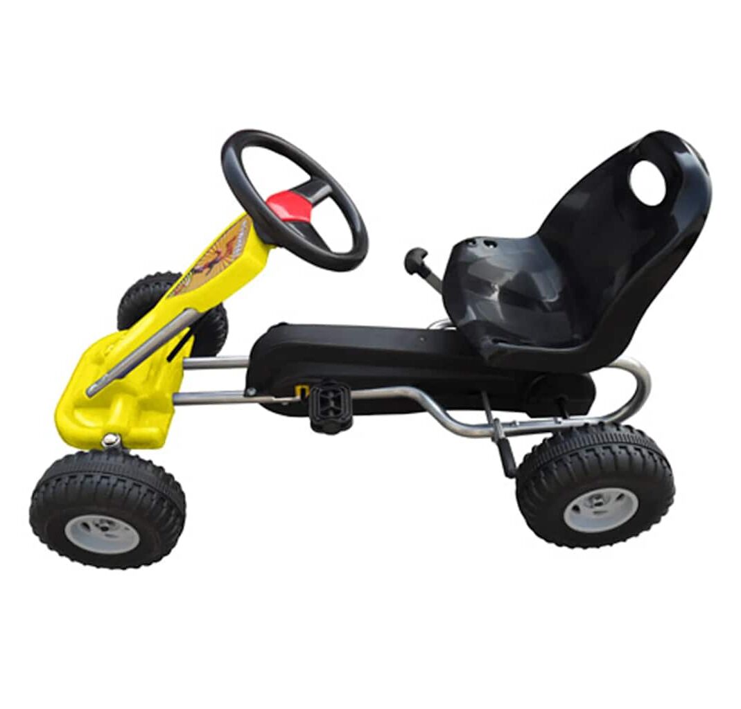 Kartul cu pedale Go Kart este prevăzut cu un lanț acoperit în întregime, pentru a asigura siguranța copiilor. Este recomandat pentru copii cu vârste între 3 și 5 ani.