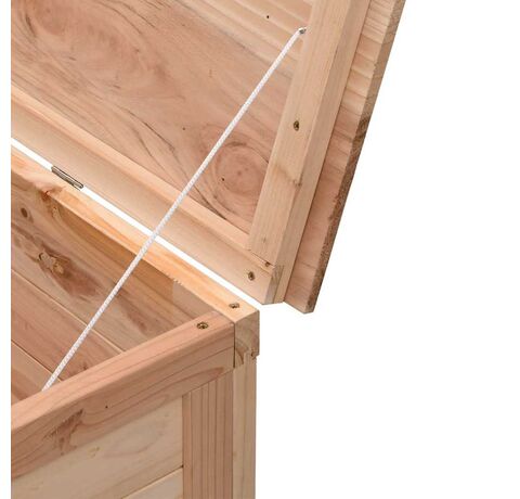 - Lemn masiv de brad: Lemnul masiv de brad este un material natural frumos. Lemnul de brad nu se usucă și nu se deformează atunci când este expus la umezeală. Realizată din lemn masiv de brad, această ladă de depozitare de exterior este durabilă și robustă.