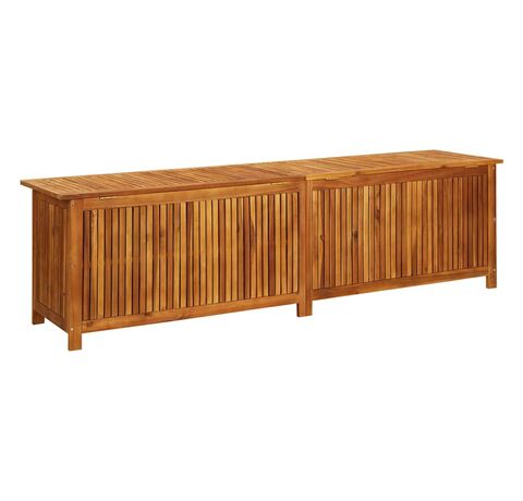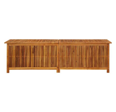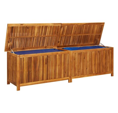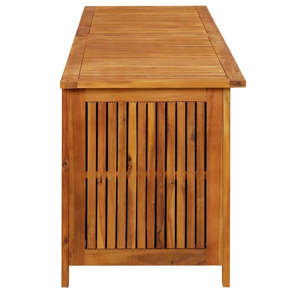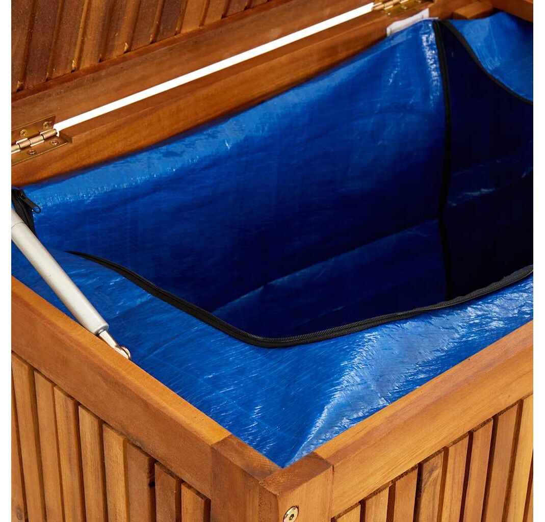 Cutia de perne este realizată din lemn masiv de acacia cu finisaj de ulei și include un sac rezistent la apă în interior cu fermoar, ceea ce o face rezistentă la uzură, foarte durabilă și potrivită pentru utilizare în spațiul exterior. De asemenea, reprezintă o soluție ideală de depozitare pentru perne, pernuțe decorative, pături suplimentare sau alte articole de uz casnic ori de grădină, pentru a le păstra la îndemână și bine organizate.