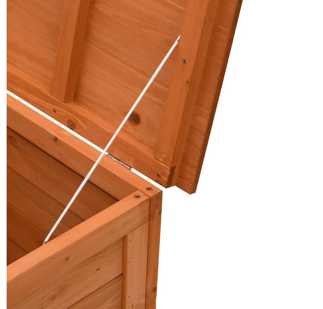 Această ladă de depozitare pentru grădină, din lemn, oferă spațiu amplu pentru decorațiuni, unelte de grădinărit și orice altceva doriți să păstrați la îndemână în spațiul de locuit de exterior.