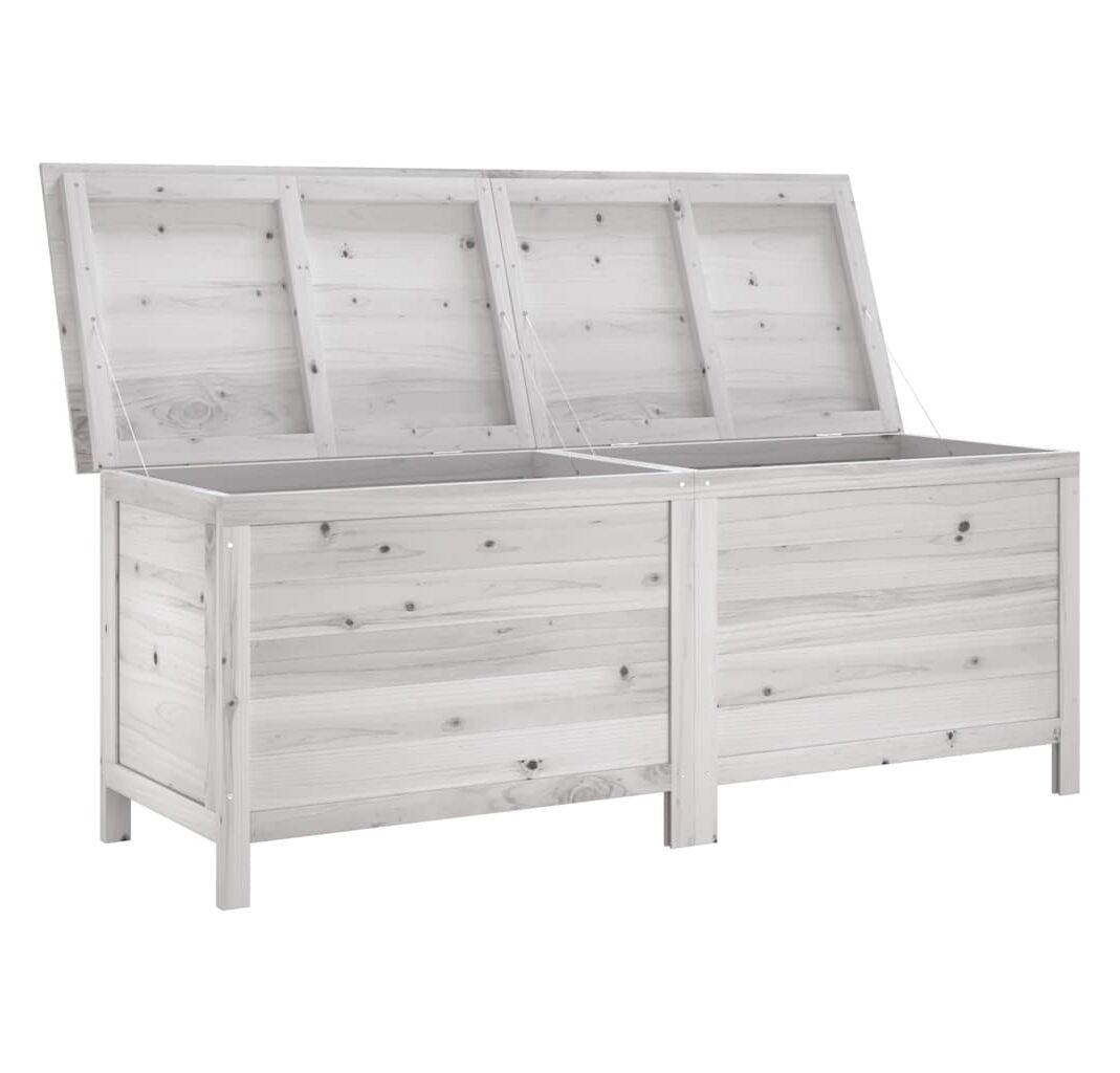 Cantitatea minima pentru "Ladă depozitare de grădină alb 150x50x56,5 cm lemn masiv brad" este 1.