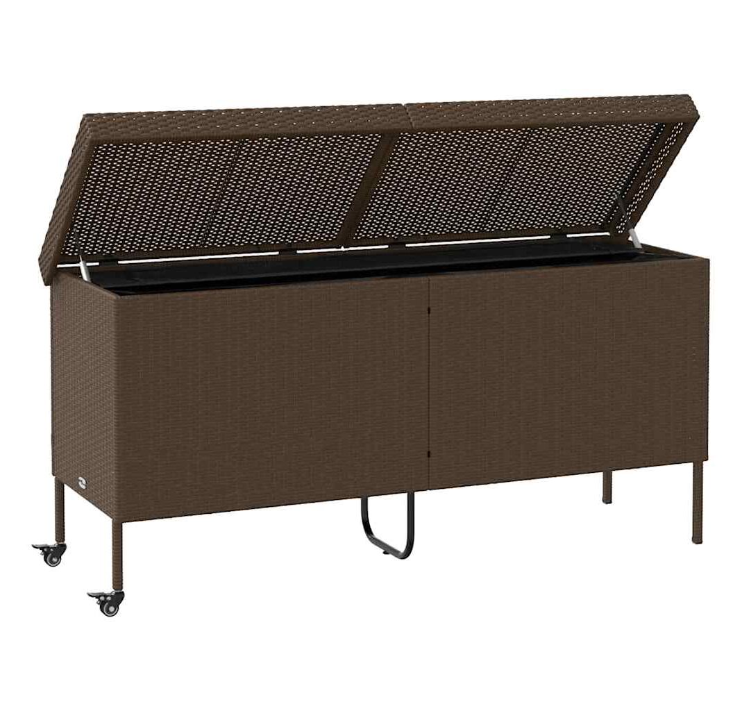 Ladă depozitare de grădină cu roți, maro 160x55x75 cm poliratan