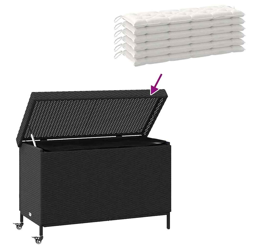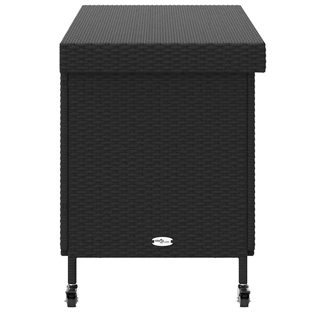 Ladă depozitare de grădină cu roți negru,110x55x73 cm poliratan