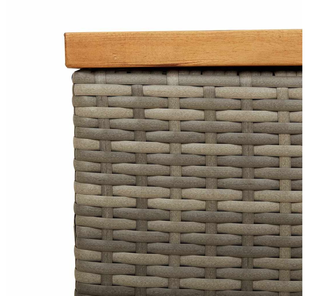 - Material: Ratan PE, oțel vopsit electrostatic, lemn masiv de acacia cu finisaj în ulei