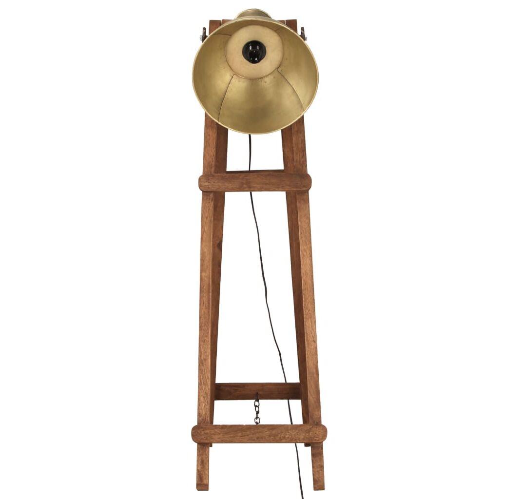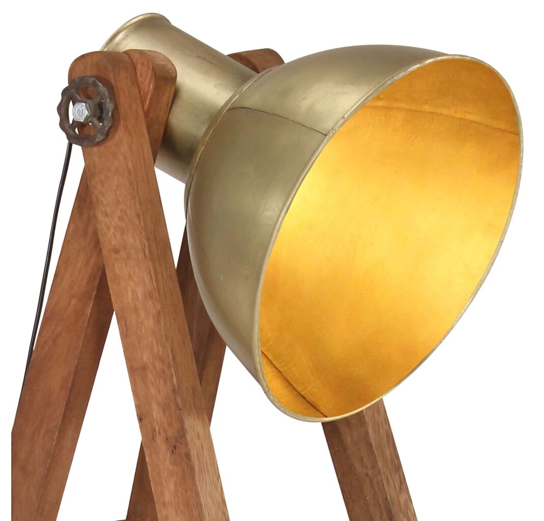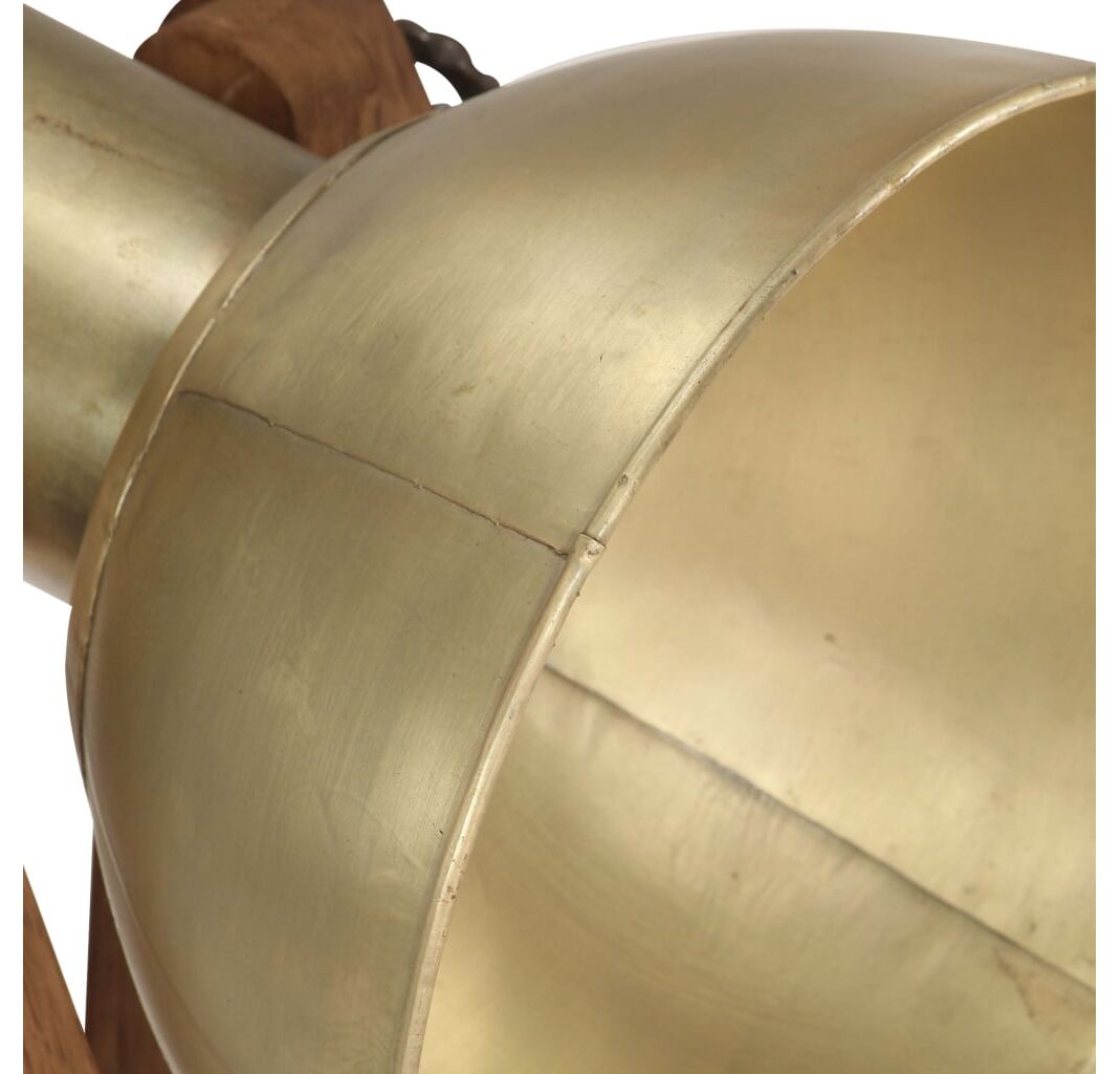 Abajurul din fier, cu finisaj de alamă, răspândește o lumină caldă și plăcută. Cadrul din lemn masiv de mango, cu finisaj brun învechit, se va potrivi perfect într-un interior rural sau industrial. Are un unghi reglabil, pentru a se potrivi diferitelor necesități. Abajurul are un fasung E27 pentru un bec de maximum 25 W. Puteți alege și instala becuri E27 de diferite culori deschise, creând o atmosferă de relaxare și odihnă. În plus, este inclus un comutator de podea, pentru o pornire și o oprire ușoare.