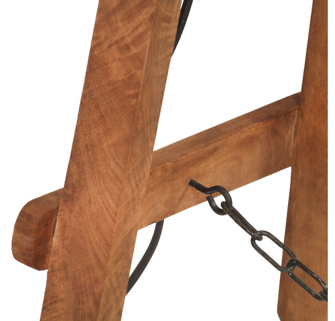 - Material: Lemn masiv de mango cu finisaj maro decolorat de hambar, fier