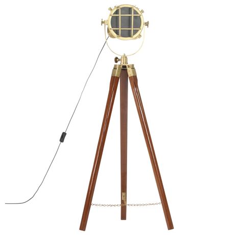 Iluminați-vă spațiul de locuit cu această lampă de podea cu trepied din lemn, în stil retro! Această lampă reflector, cu un design vintage, este un element atrăgător și modern în orice interior.