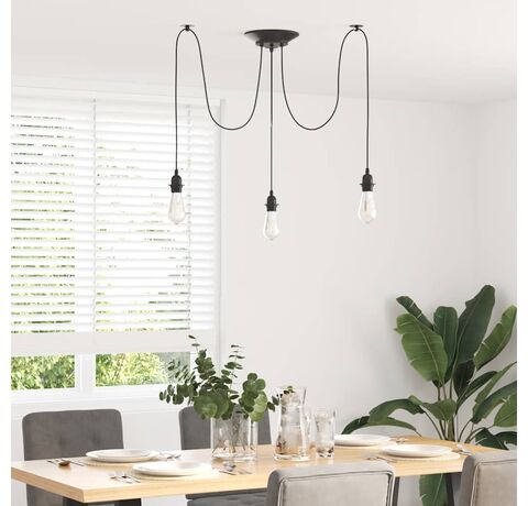 Lampă suspendată cu 3 suporturi E27 metal negru