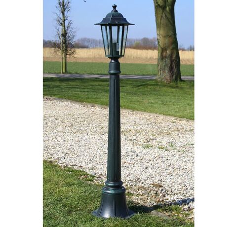 Acest set de 2 lămpi de grădină, de culoare verde închis, este fabricat din aluminiu și sticlă transparentă. Sunt compatibile cu becuri cu o putere maximă de 60 W.