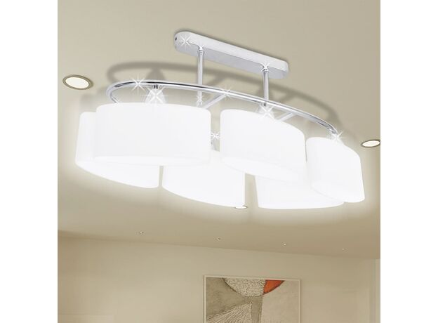 Acest candelabru unic cu 6 abajururi, dispune de un design modern, grație finisajului din crom - perfect pentru camera de zi sau dormitor cu orice stil.