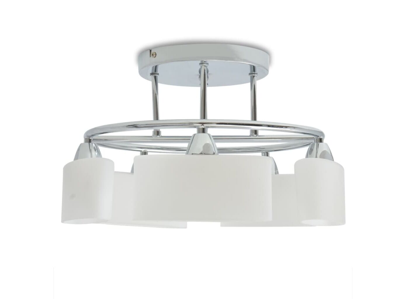 Această lustră unică, cu cinci abajururi din sticlă, are un design modern și se va potrivi oricărui decor de living sau dormitor.