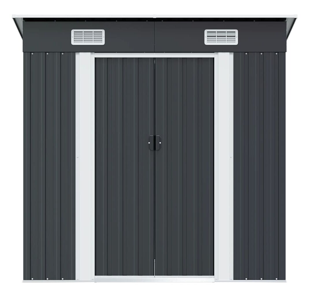 - Design practic: Această magazie are 2 orificii de ventilație în față, asigurând o ventilație excelentă. Ușile glisante duble din față permit intrarea și ieșirea ușoară.